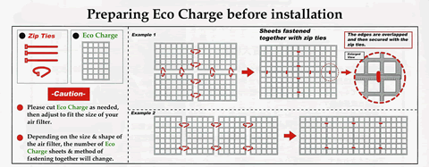 - Determine how many sheets of Eco Charge ICB are needed for your size and shape of air filter and combine as shown below.